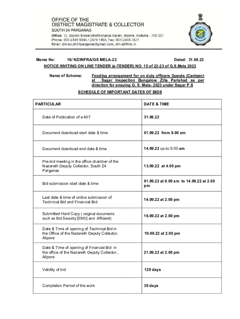 Get the free NZ/INFRA/GS MELA-23 Dated: 31.08.22 NOTICE INVITING ... - s24pgs gov