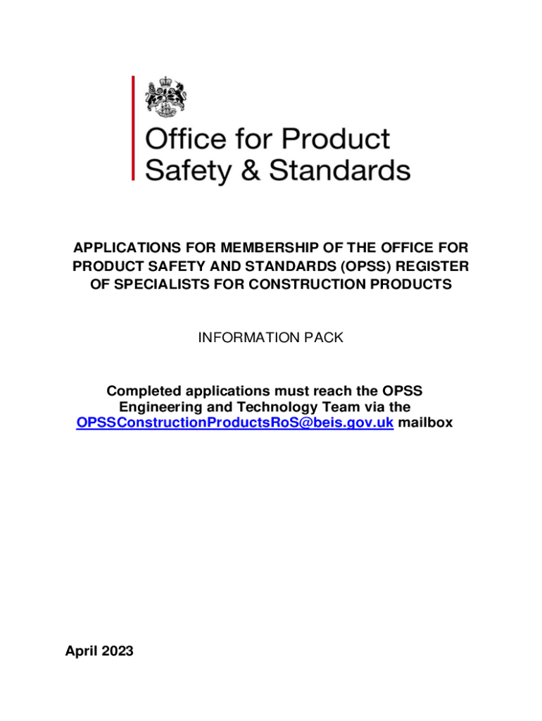 APPLICATIONS FOR MEMBERSHIP OF THE OFFICE FOR PRODUCT SAFETY AND STANDARDS (OPUS) REGISTER OF SPECIALISTS FOR CONSTRUCTION PRODUCTSINFORMATION PACKCompleted applications must reach the OPUS Engineering