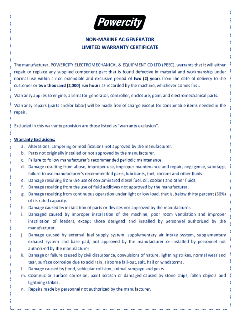 Get the free NON-MARINE AC GENERATOR LIMITED WARRANTY ...