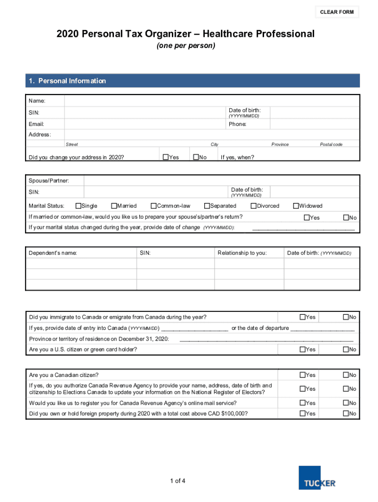CLEAR FORM2020 Personal Tax Organizer Healthcare Professional