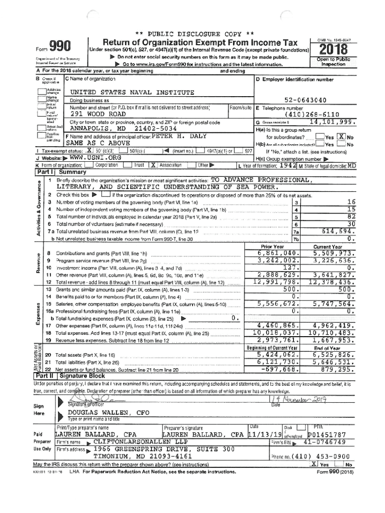 UNITED STATES NAVAL INSTITUTE Part III Statement of Program Service Accomplishments520643040Form 990 (2018)1Check if Schedule O contains a response or note to any line in this Part III Briefly describe