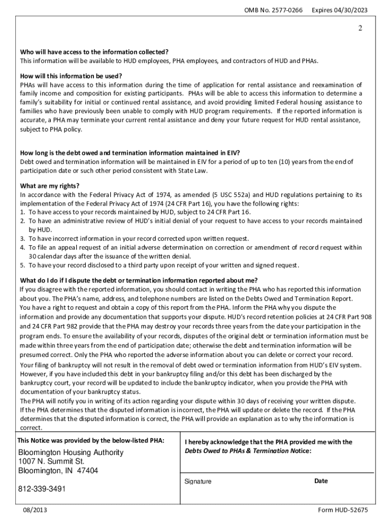 I, ___ certify that I have received a briefing on the Section 8 Voucher Program from a