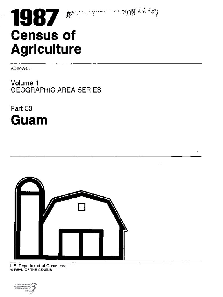\” 19871(:\”;\”\”. Census of Agriculture ACB7A53Volume 1 GEOGRAPHIC AREA SERIES Part 53GuamU. S. Department of Commerce BUREAU OF THE CENSUS\”\”\” Lon L.l !ACKNOWLEDGMENTSThis report