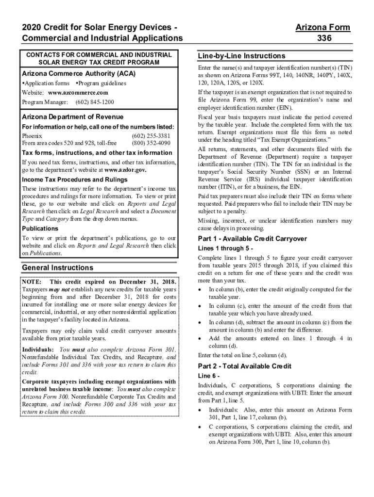 2020 Credit for Solar Energy Devices Commercial and Industrial Applications CONTACTS FOR COMMERCIAL AND INDUSTRIAL SOLAR ENERGY TAX CREDIT PROGRAM Arizona Commerce Authority (ACA) Application forms