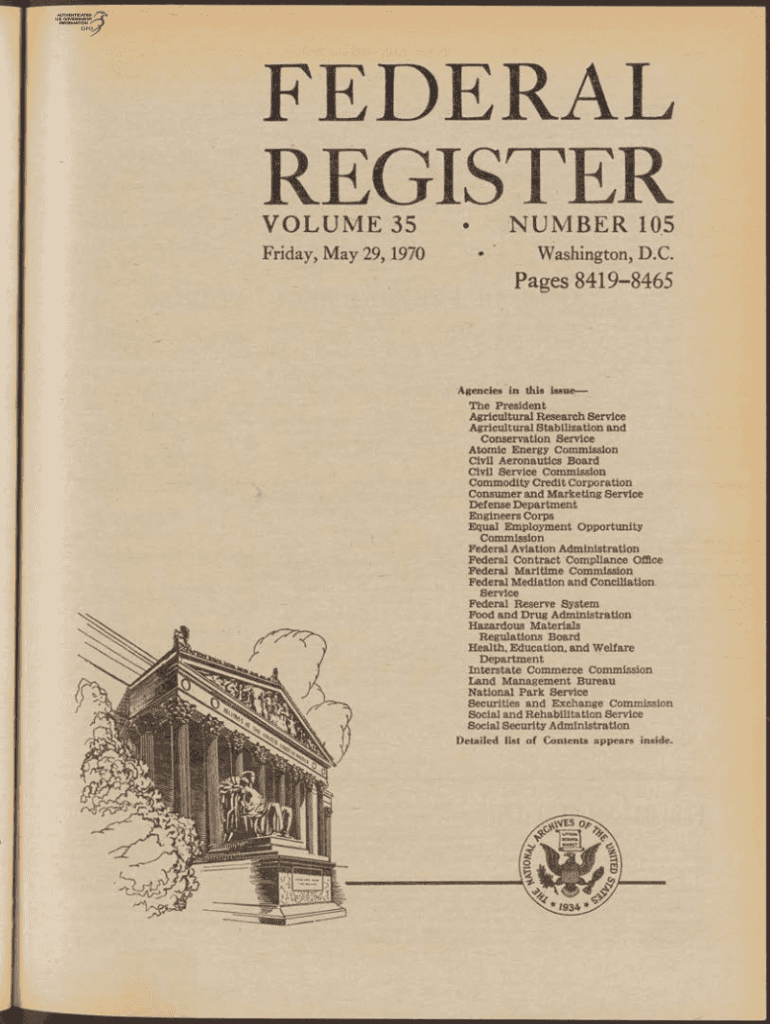 FEDERAL REGISTER O L U M E 35Friday, May 29, 1970, N U M B E R 105Washington, D.C. Pages 84198465A agencies in this issue President Agricultural Research Service Agricultural Stabilization and Conservation
