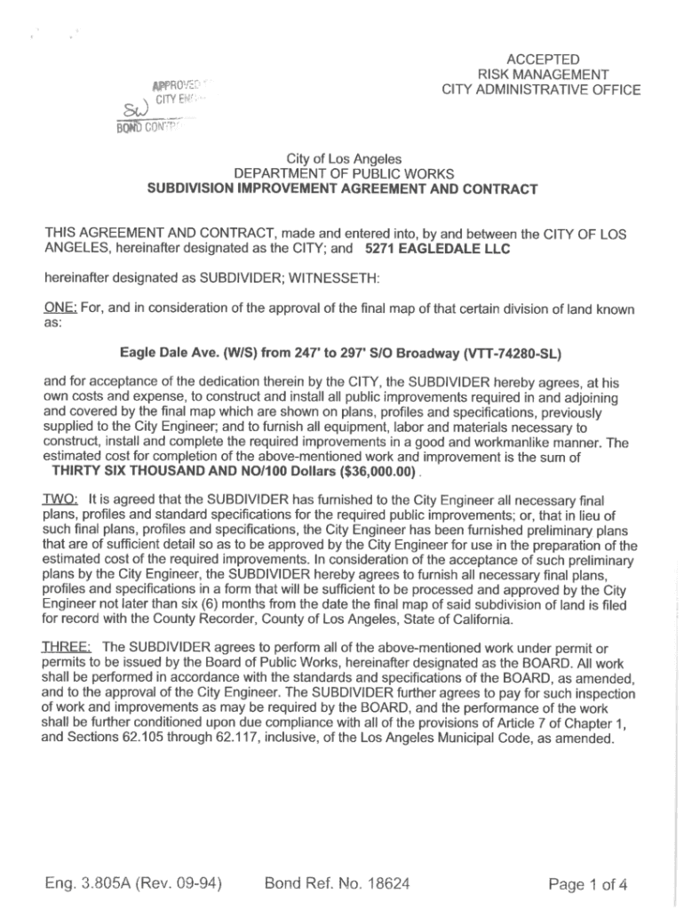 SUBDIVISION IMPROVEMENT AGREEMENT AND CONTRACTS AGREEMENT AND