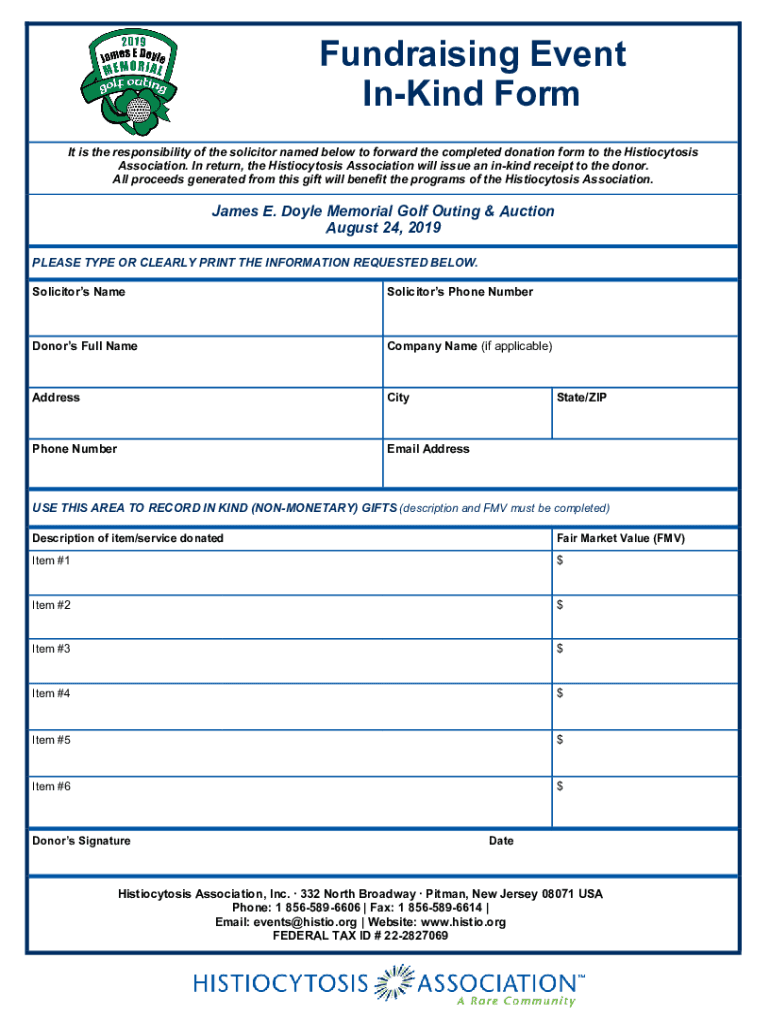 The purpose of fundraising event in-kind form is to accurately record and report donations received for a fundraising event.