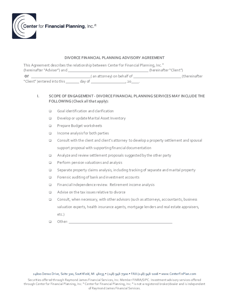DIVORCE FINANCIAL PLANNING ADVISORY AGREEMENT