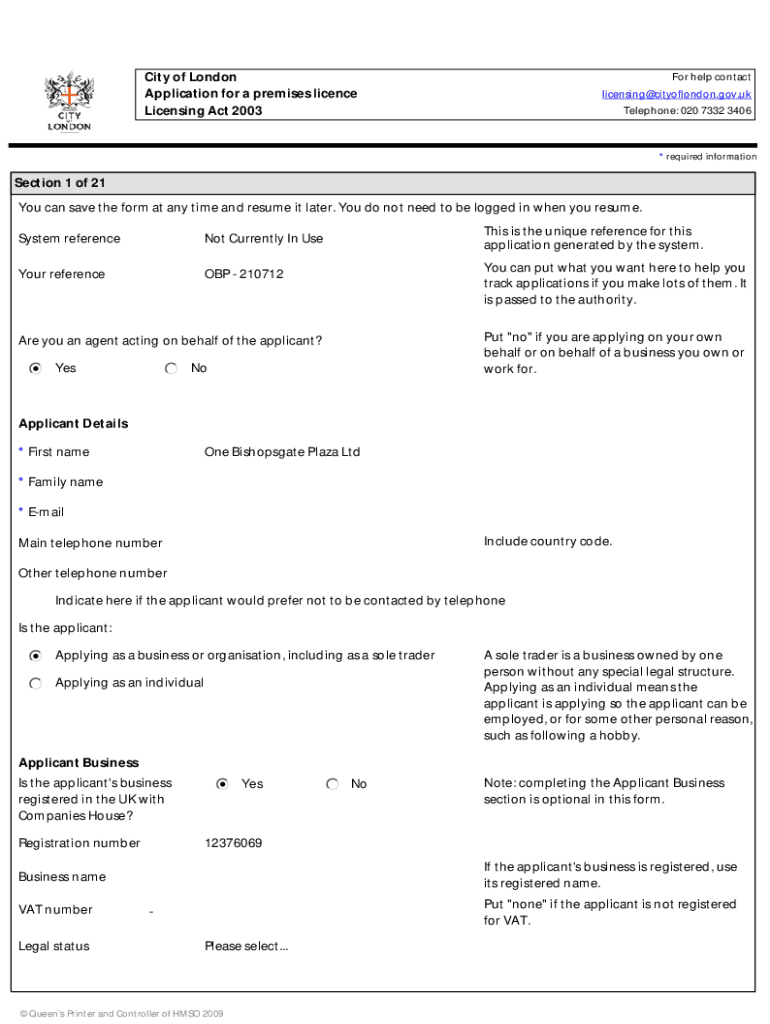 Form sky premises licence can be filled out online or by contacting the local licensing authority for assistance.