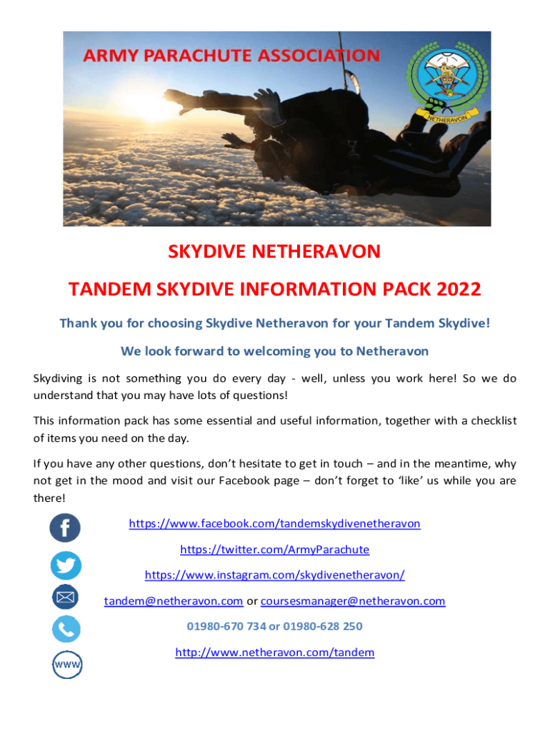 TANDEM SKYDIVE INFORMATION PACK 2022