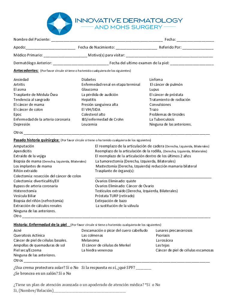 Dermatology Anterior: ___ Tech Del ultimo examen DE la pail: