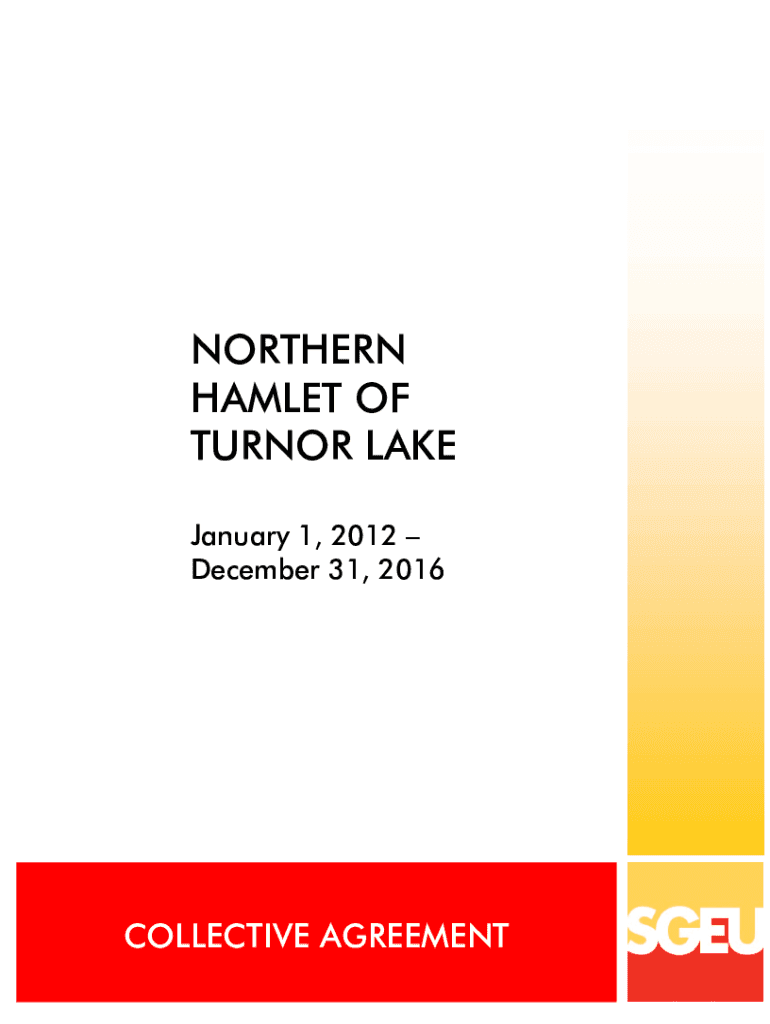 NORTHERN HAMLET OF TURNER LAKE January 1, 2012, December 31, 2016COLLECTIVE AGREEMENTPREAMBLE Articles of an Agreement made in duplicate this ___ day of March 2012 Between The Northern Hamlet of Turner