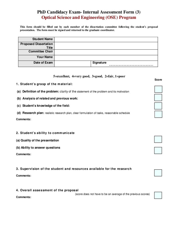 Get the free PhD Candidacy Exam- Internal Assessment Form (3) - optics unm