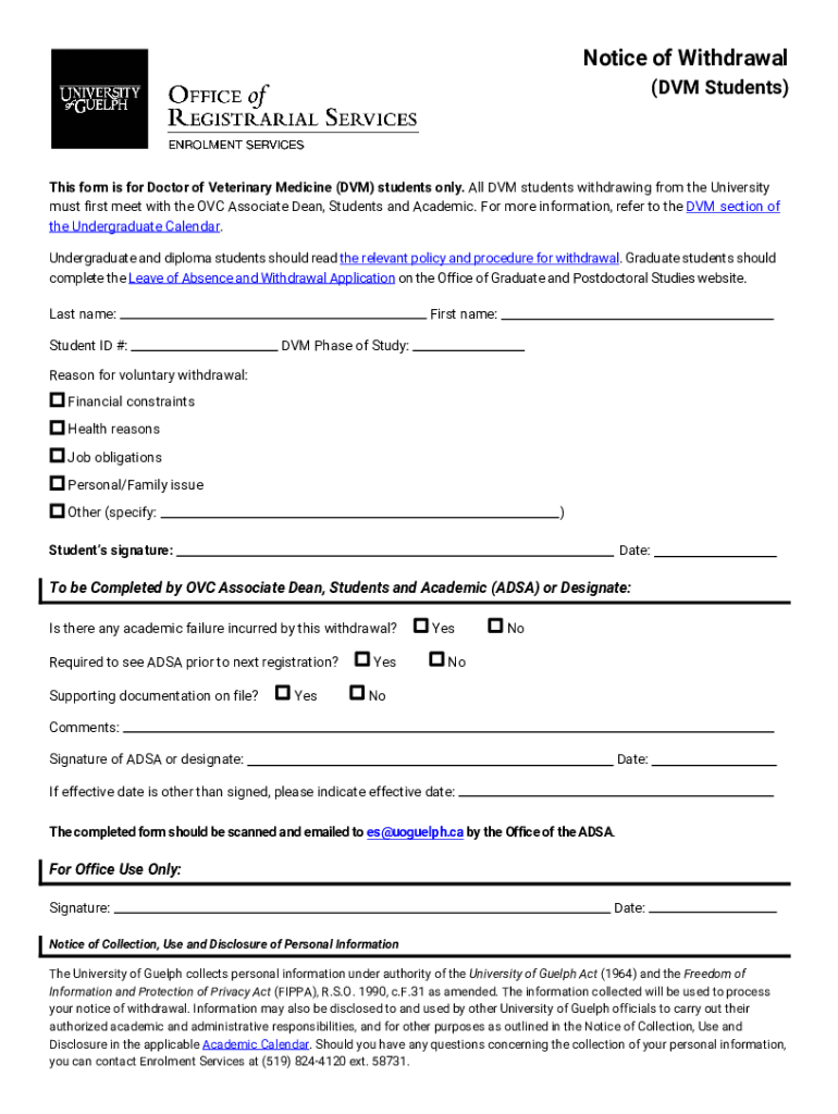 Get the free Notice of Withdrawal DVM Students This form is for Doctor ...