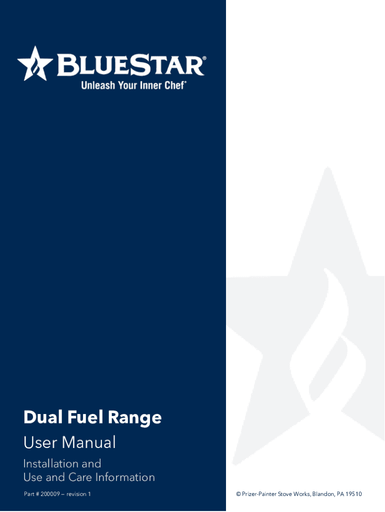 Dual Fuel Range User Manual Installation and Use and Care Information Part # 200009 revision 1 PrizerPainter Stove Works, Brandon, PA 195102(800) 4498691Thank You and Welcome Thank you for your purchase