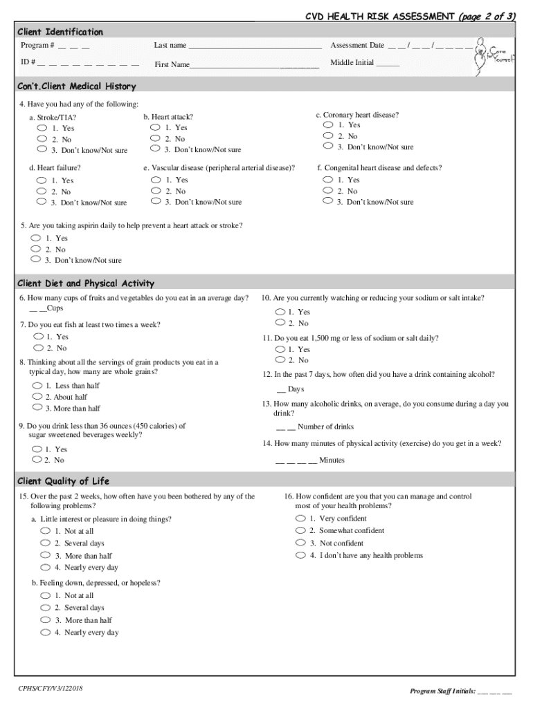 CVD HEALTH RISK ASSESSMENT (page 2 of 3)