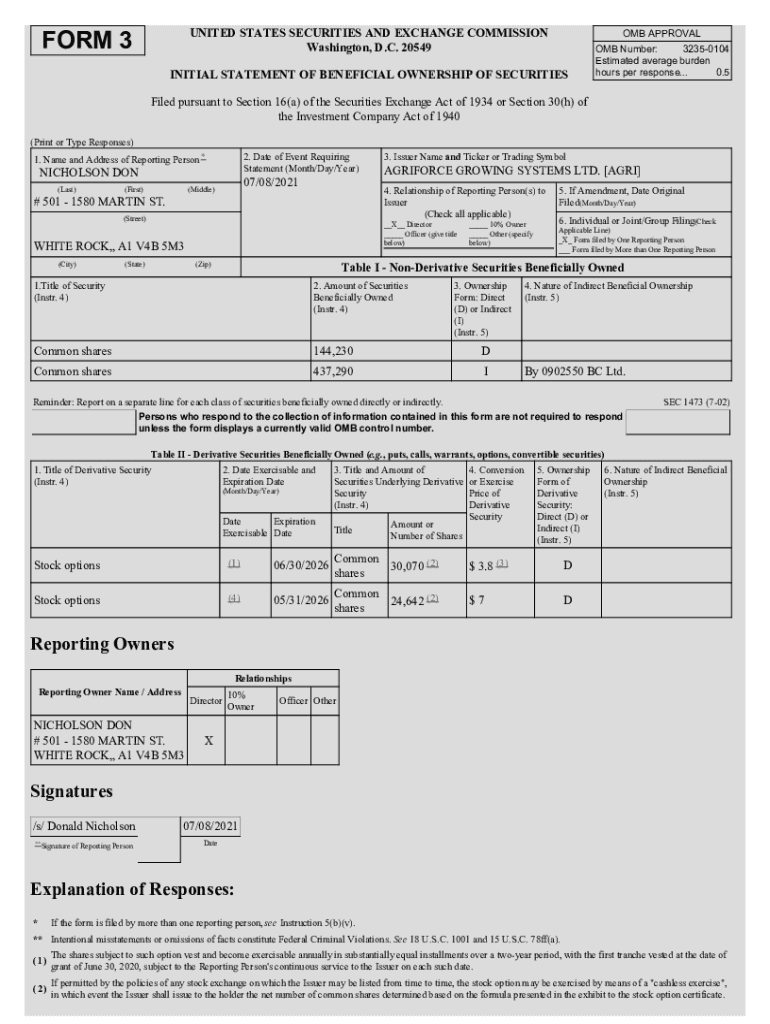 UNITED STATES SECURITIES AND EXCHANGE COMMISSION Washington, D.C. 20549FORM 3OMB APPROVALINITIAL STATEMENT OF BENEFICIAL OWNERSHIP OF SECURITIES OMB Number: 32350104 Estimated average burden hours
