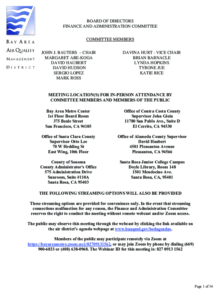 FINANCE AND ADMINISTRATION COMMITTEE MEMBERS
