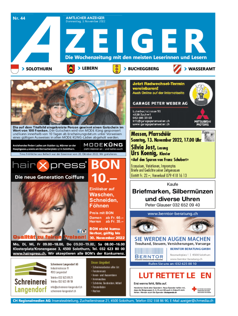 NR. 44AMTLICHER ANZEIGERDonnerstag, 3. November 2022Die AUF them Titelbild eingekreiste Person the gooiest linen Dutchman I'm