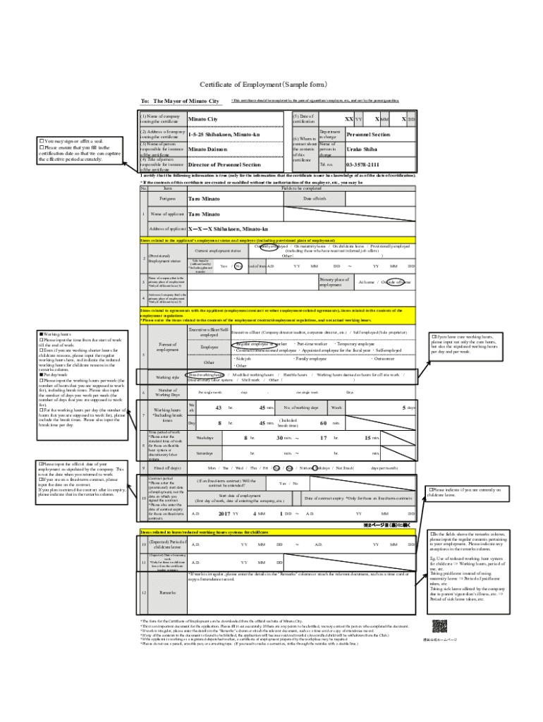 Certificate of EmploymentS ample form To: The Mayor of Into City (1) Name of company issuing the certificate may sign or affix a seal. Please ensure that you fill in the certification date so that