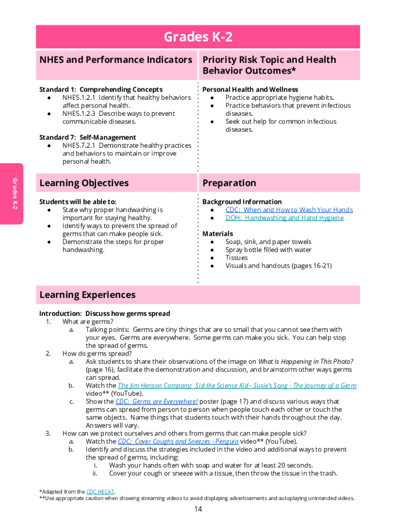Grades K2 NHS and Performance IndicatorsPriority Risk Topic and Health Behavior Outcomes×Standard 1: Comprehending Concepts NHS.1.2.1 Identify that healthy behaviors act personal health. NHS.1.2.3