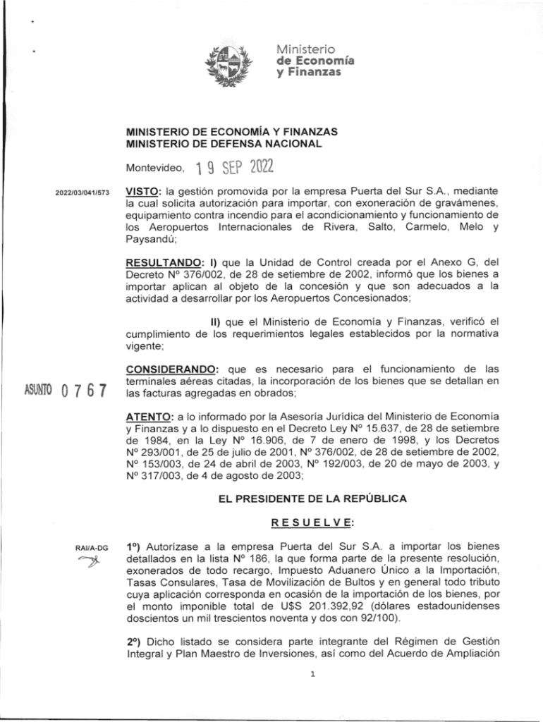 y Finances IN IS T E R IO DE E C O N O M A Y FIN A N Z A S