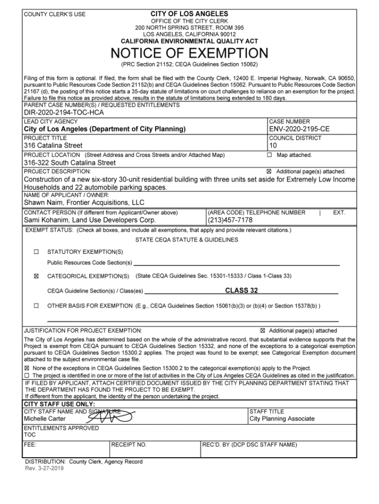 Get the free NOTICE OF EXEMPTION - LA City Clerk's - City of Los Angeles