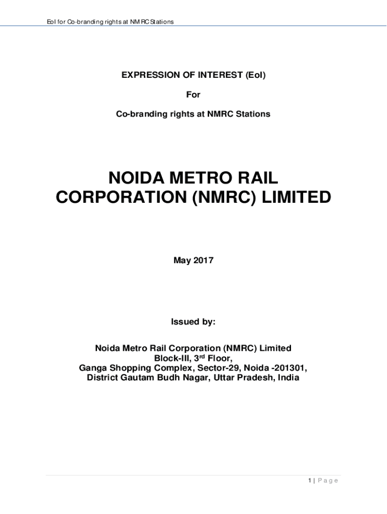 EOI for Cobranding rights at NMR StationsEXPRESSION OF INTEREST (EOI)