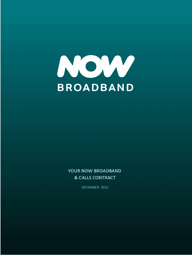 YOUR NOW BROADBAND & CALLS CONTRACT DECEMBER 2021NOW Broadband and Calls Contract Terms and Conditions from December 2021 KEY TERMS These are the terms and conditions (Conditions) on which the NOW