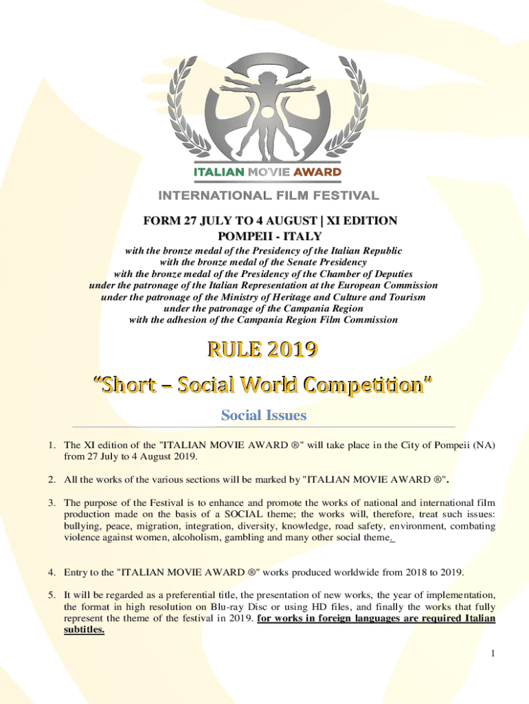 FORM 27 JULY TO 4 AUGUST | XI EDITION POMPEII ITALY with the bronze medal of the Presidency of the Italian Republic with the bronze medal of the Senate Presidency with the bronze medal of the Presidency