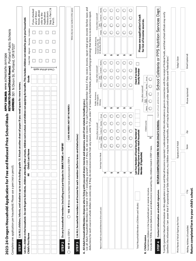 202324 Confidential Family Application for Free and Reduced Price Meals Dear Parent/Guardian: Children need healthy meals to learn. Portland Public School offers healthy meals to students every school