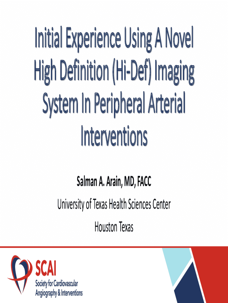 Initial Experience Using A Novel High Definition (Hide) Imaging System In Peripheral Arterial Interventions Salman A. Again, MD, FACE University of Texas Health Sciences Center Houston TexasDisclosures