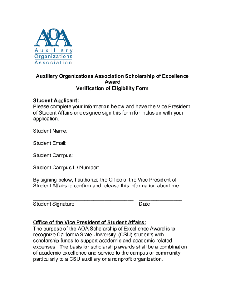 Get the free Auxiliary Organizations Association Scholarship of Excellence