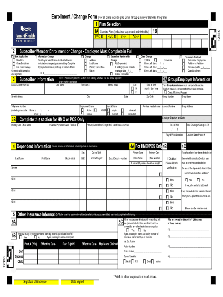 Enrollment / Change Form (For all plans including NJ Small Group Employer Benefits Program)