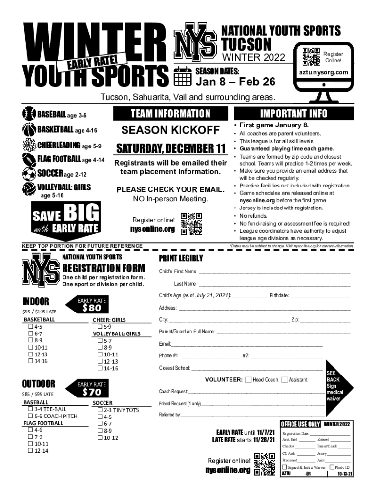 Online!WINTER 2022YOUTH SPORTSPERSON DATES:AZT.cyborg.com Jan 8 Feb 26Tucson, Sahuarita, View and surrounding areas. IMPORTANT INSTEAD INFORMATIONBASEBALL