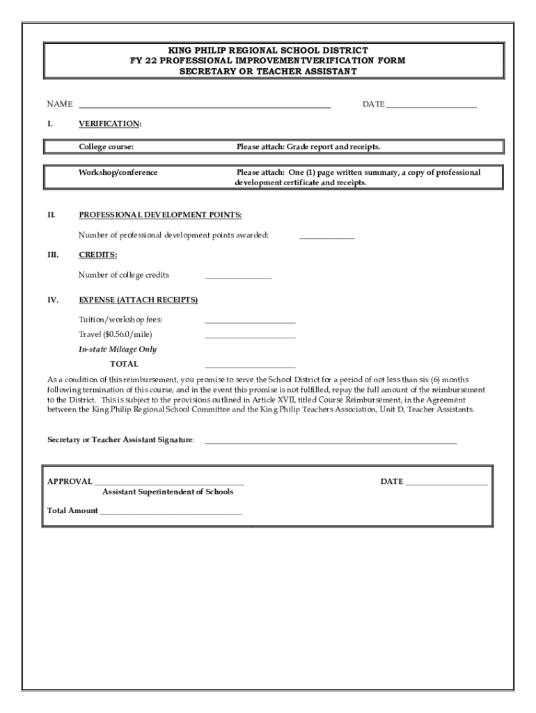 FY 22 PROFESSIONAL IMPROVEMENTVERIFICATION FORM
