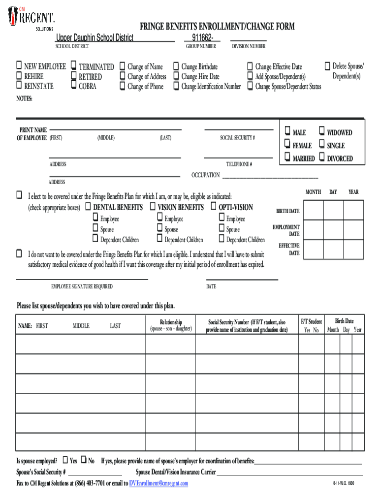 fringe BENEFITS ENROLLMENT/CHANGE FORM