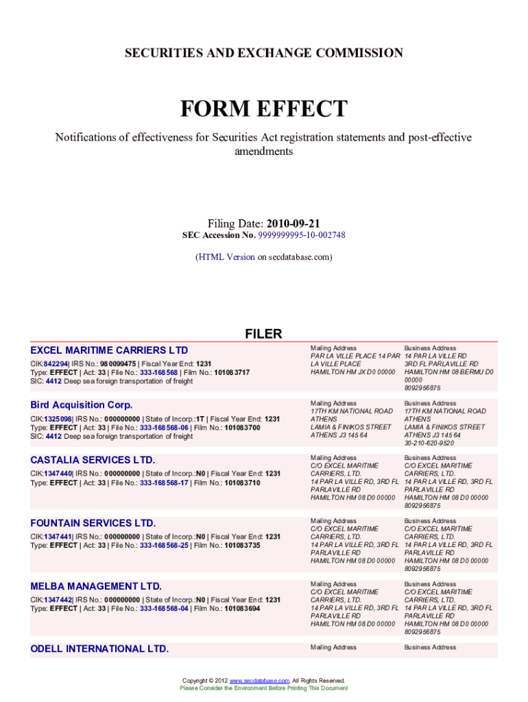 Get the free EXCEL MARITIME CARRIERS LTD (Form. Accession Number