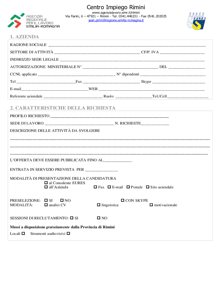 Ottieni il gratuito Sedi e contatti del centro per l'impiego di Rimini