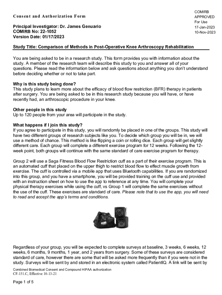 Get the free Dr. James Genuario COMIRB No: 22-1052 Version Date