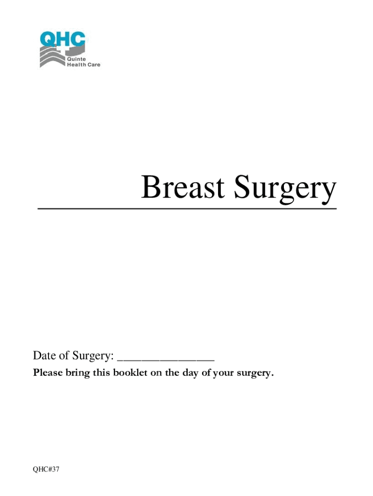 Breast SurgeryDate of Surgery: ___ Please bring this booklet on the day of your surgery.QC#37Purpose of this Booklet has been designed as a resource for patients undergoing breast surgery. It has