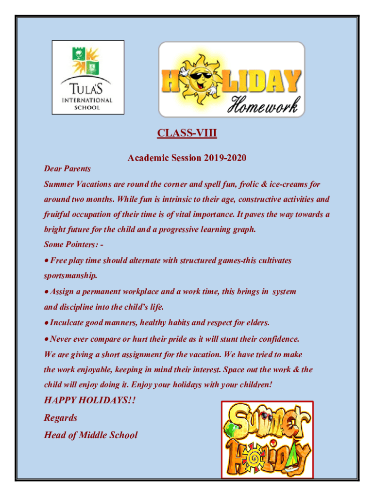 CLASSIC Dear ParentsAcademic Session 20192020Summer Vacations are round the corner and spell fun, frolic & ice creams for around two months. While fun is intrinsic to their age, constructive activities
