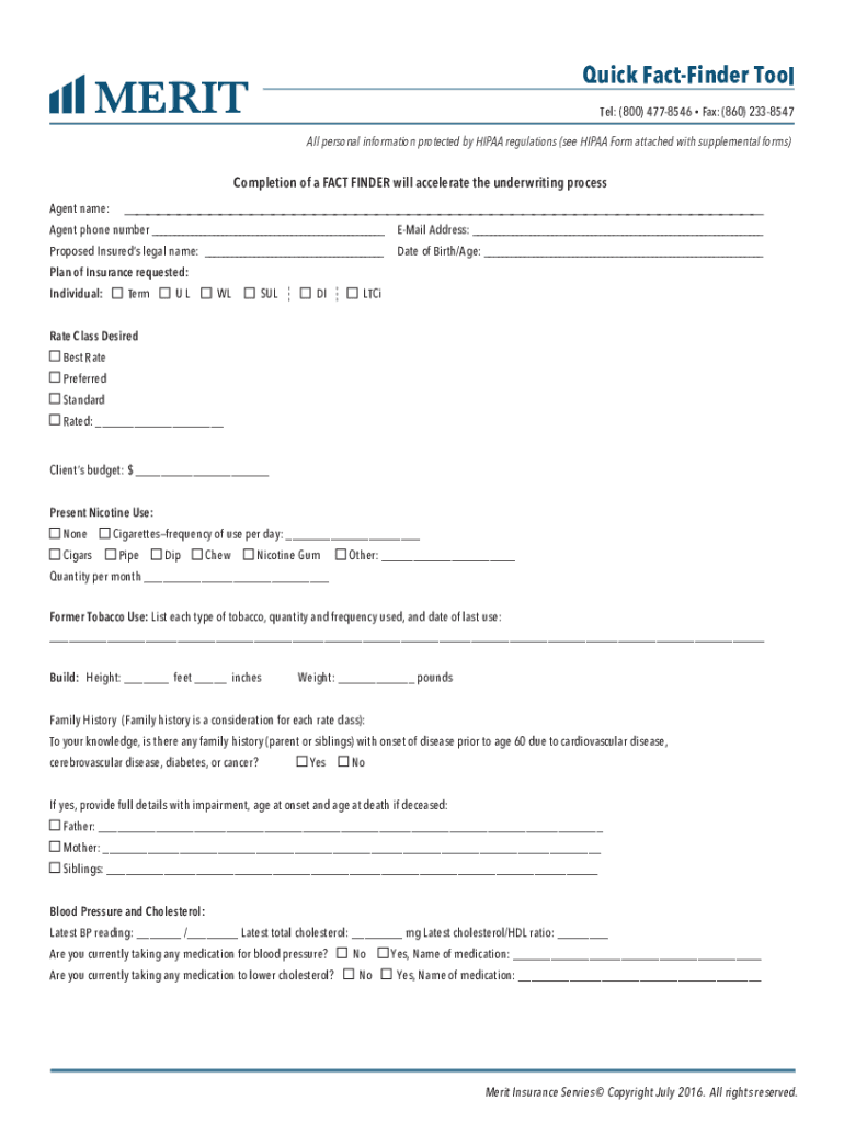 Quick Faultfinder ToolMERITTel: (800) 4778546 Fax: (860) 2338547 All personal information protected by HIPAA regulations (see HIPAA Form attached with supplemental forms)Completion of a FACT FINDER