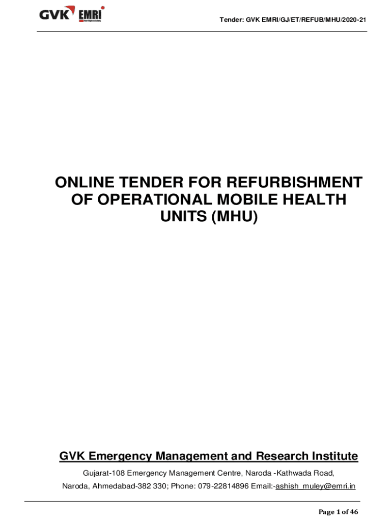 Tender: AVK MRI/GJ/ET/REFER/MHC/202021ONLINE TENDER FOR REFURBISHMENT