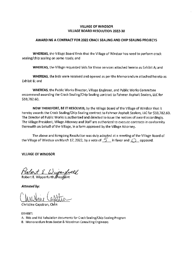 AWARDING CONTRACT FOR 2022 CRACK SEALING AND CHIP SEALING PROJECTSWHEREAS, the VillageBoard finds that the Village of Windsor has need to performcracksealing/chip