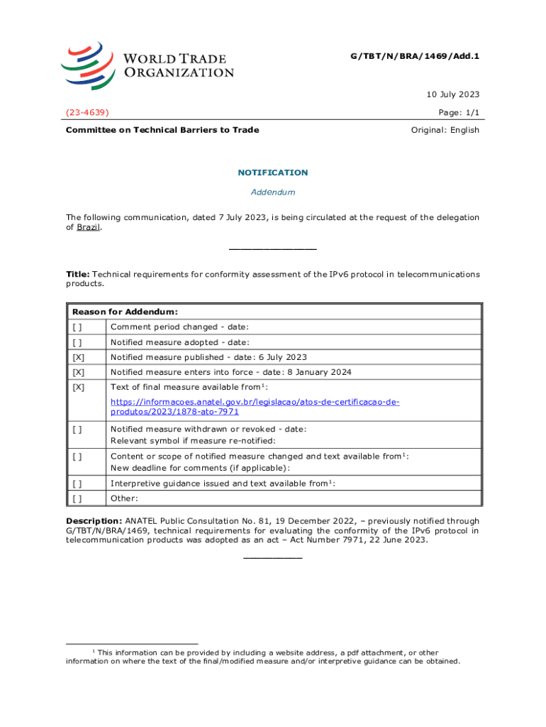 Get the free G/TBT/N/BRA/1469/Add - tec gov