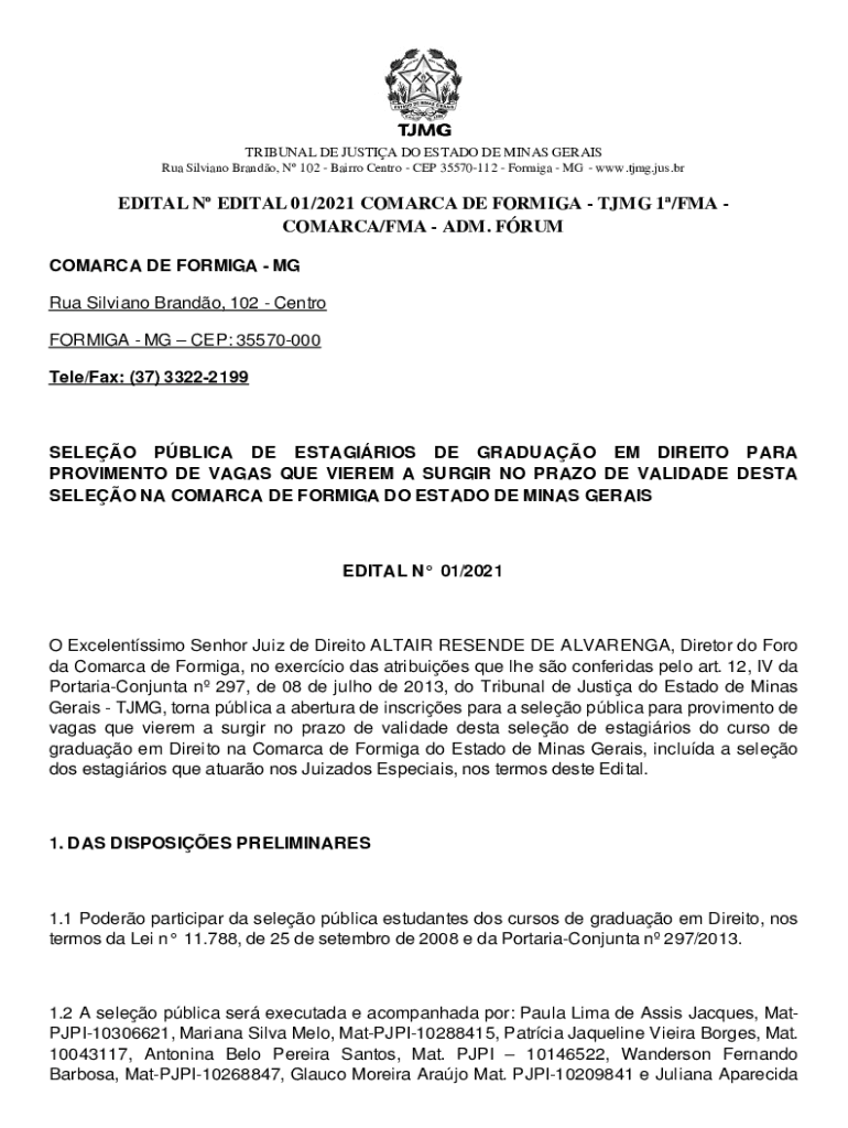 RUA Silvia no Brando, N 102 Herero CENTR CEP 35570112 Formica MG www.tjmg.jus.brEDITAL N EDIT AL 01/2021 COMARCA DE FORMICA TMG 1/FMA COMARCA/FMA ADM.