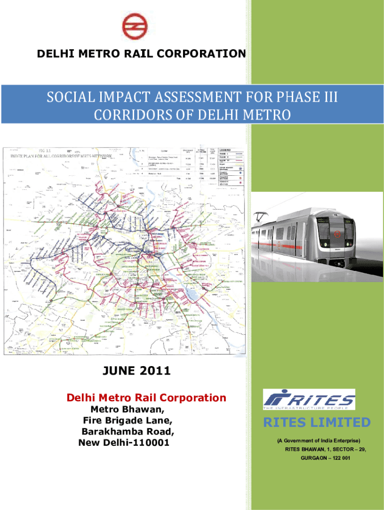 DELHI METRO RAIL CORPORATIONSOCIAL IMPACT IMPACT ASSESSMENT FOR PHASE III CORRIDORS OF DELHI METRONOME 2 2011 Delhi Metro Rail Corporation Metro Shawn, Fire Brigade Lane, Barakhamba Road, New Delhi110001