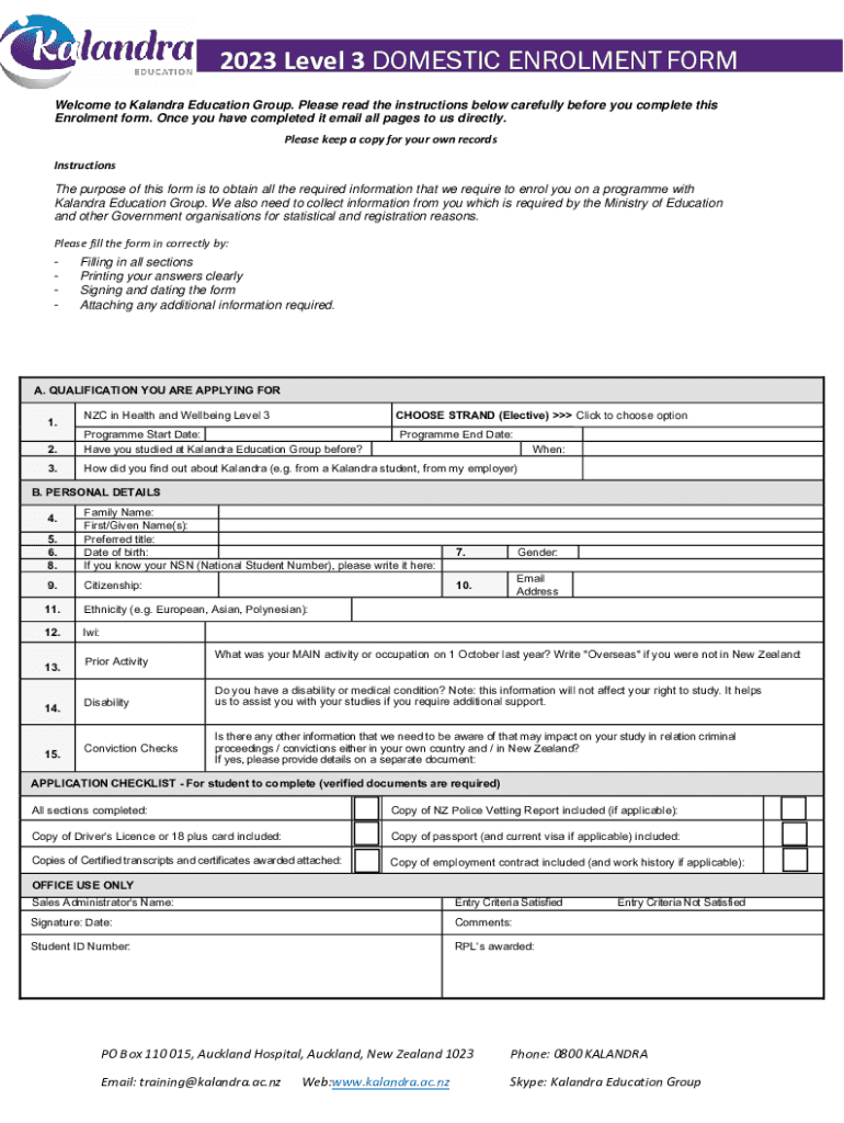 2023 Level 3 DOMESTIC Enrollment FORM Welcome to Casandra Education Group. Please read the instructions below carefully before you complete this Enrollment form. Once you have completed it email all