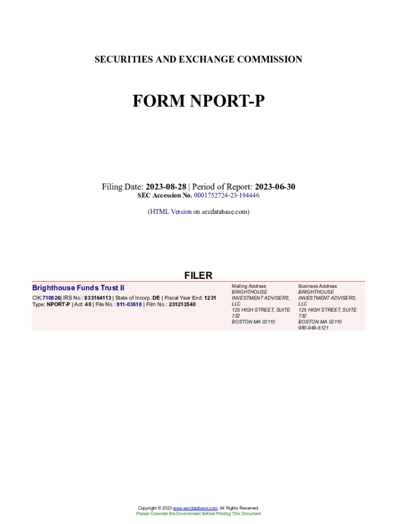 Get the free Brighthouse Funds Trust II Form NPORT-P Filed 2023-08-28. Accession Number